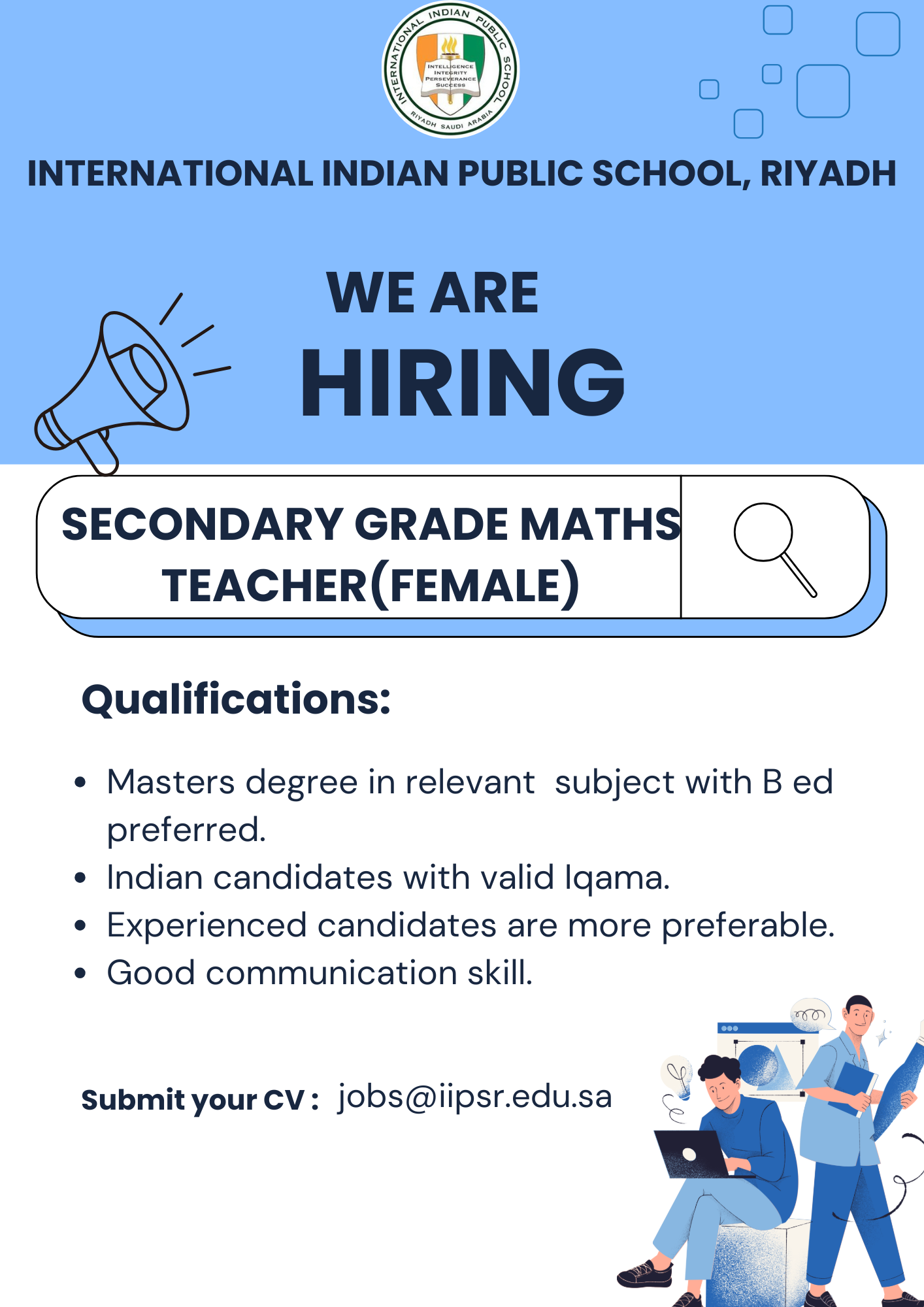 Job Openings for Secondary Grade Maths Teacher(Female)